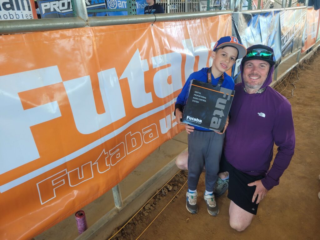 Paxton is the lucky winner of a Futaba 10PX radio, and at just 8 years old… he’s officially in control.